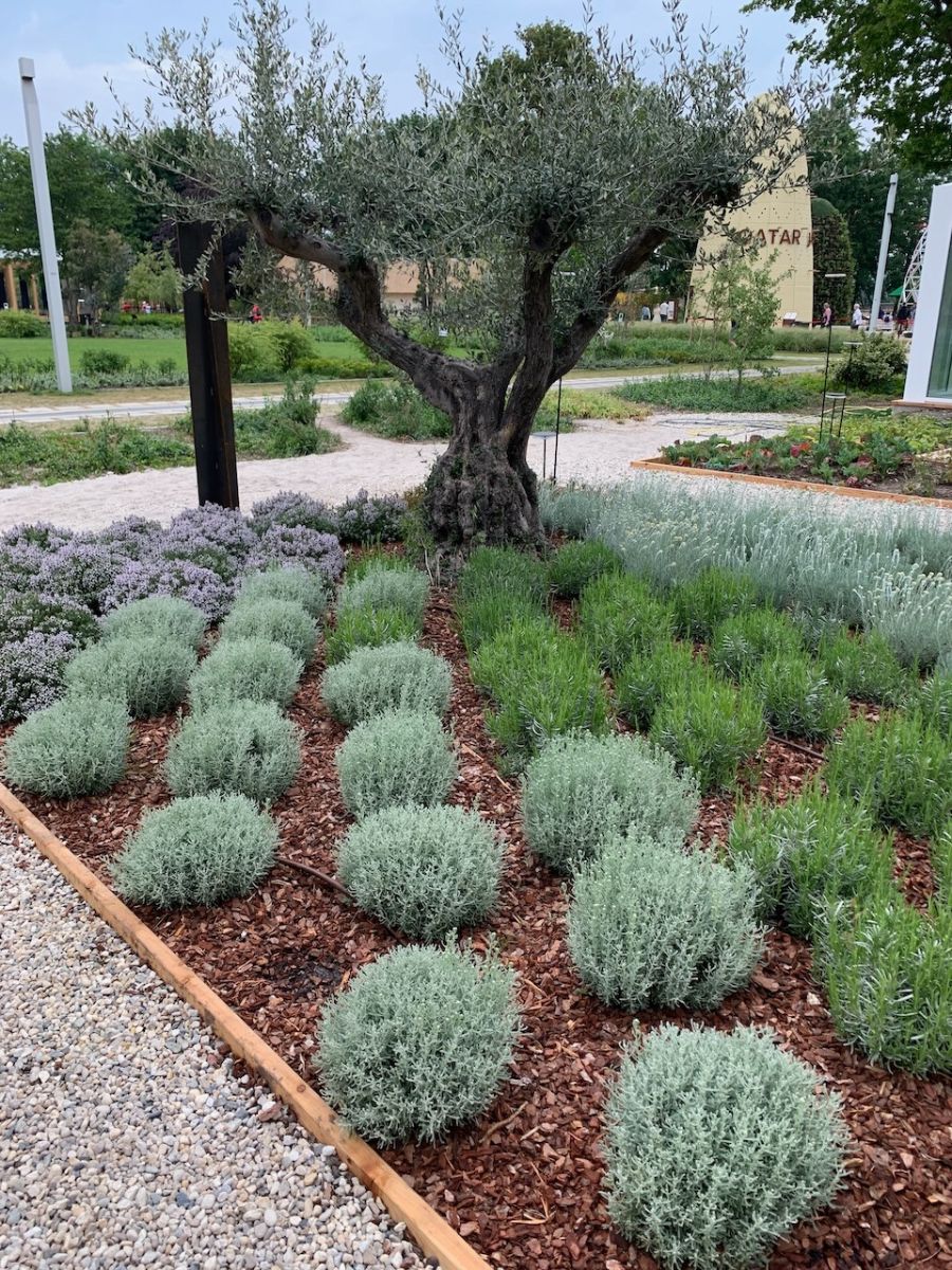 Ein Muss! Der ganze Hügel ist mit Lavendel und Rosmarin bepflanzt (sie blühten leider noch nicht), aber der Blick über das Oudolf-Areal und das große Gewächshaus ist unvergesslich.